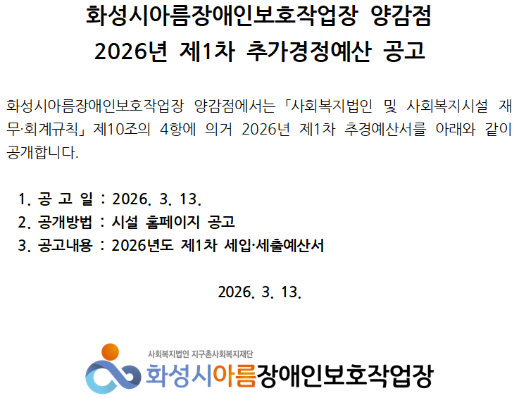 2026년 1차 추경 예산서 공고