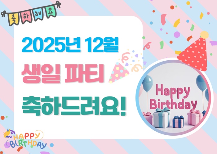 12월에 태어나신 분들 생일축하합니다! 아름박스 0 4 12.19 17:59 안녕하세요 화성시아름장애인보호작업장 양감점입니다~!오늘은 12월에 태어나신 우리 이용자분생일파티가 있었어요! 다같이 생일 축하 노래도 부르고선물도 받는 즐거운 시간이었습니다!! 다시 한 번 생일 축하드려요~!