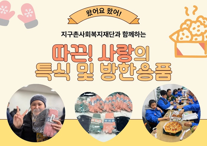 지구촌사회복지재단의 선물이 왔어요 아름박스 0 10 12.24 17:42 안녕하세요!화성시아름장애인보호작업장 양감점입니다 :) 성탄절을 맞이하여 지구촌사회복지재단 이사님들께서 이용자를 위해 깜짝 선물로 모자와 장갑을 보내주셨어요!!! 또한 맛있는 피자와 치킨으로 배도 든든하게 채워주셔서마음도 따뜻해지는 크리스마스가 되었습니다 ㅎㅎ 다시 한 번 감사드립니다!