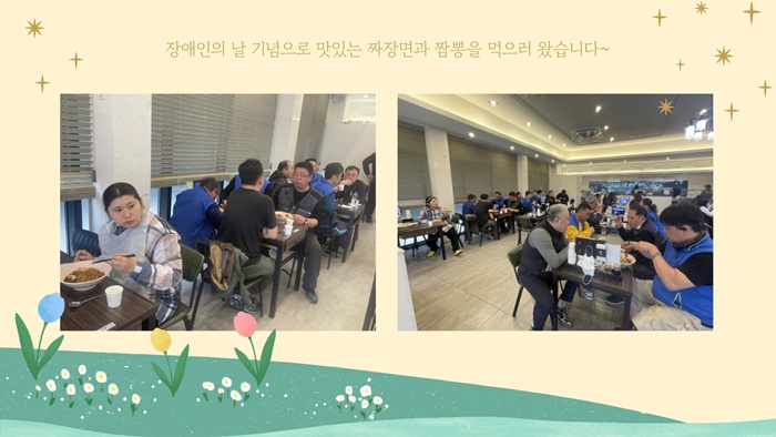 4월 20일 장애인의 날을 맞이하여 특식 활동과 복지관 행사에 참여하였습니다.